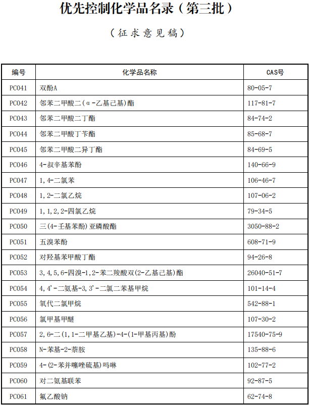 11月21日,生态环境部发布公告,就《优先控制化学品名录(第三批)(征求意见稿)》,公开征求意见。