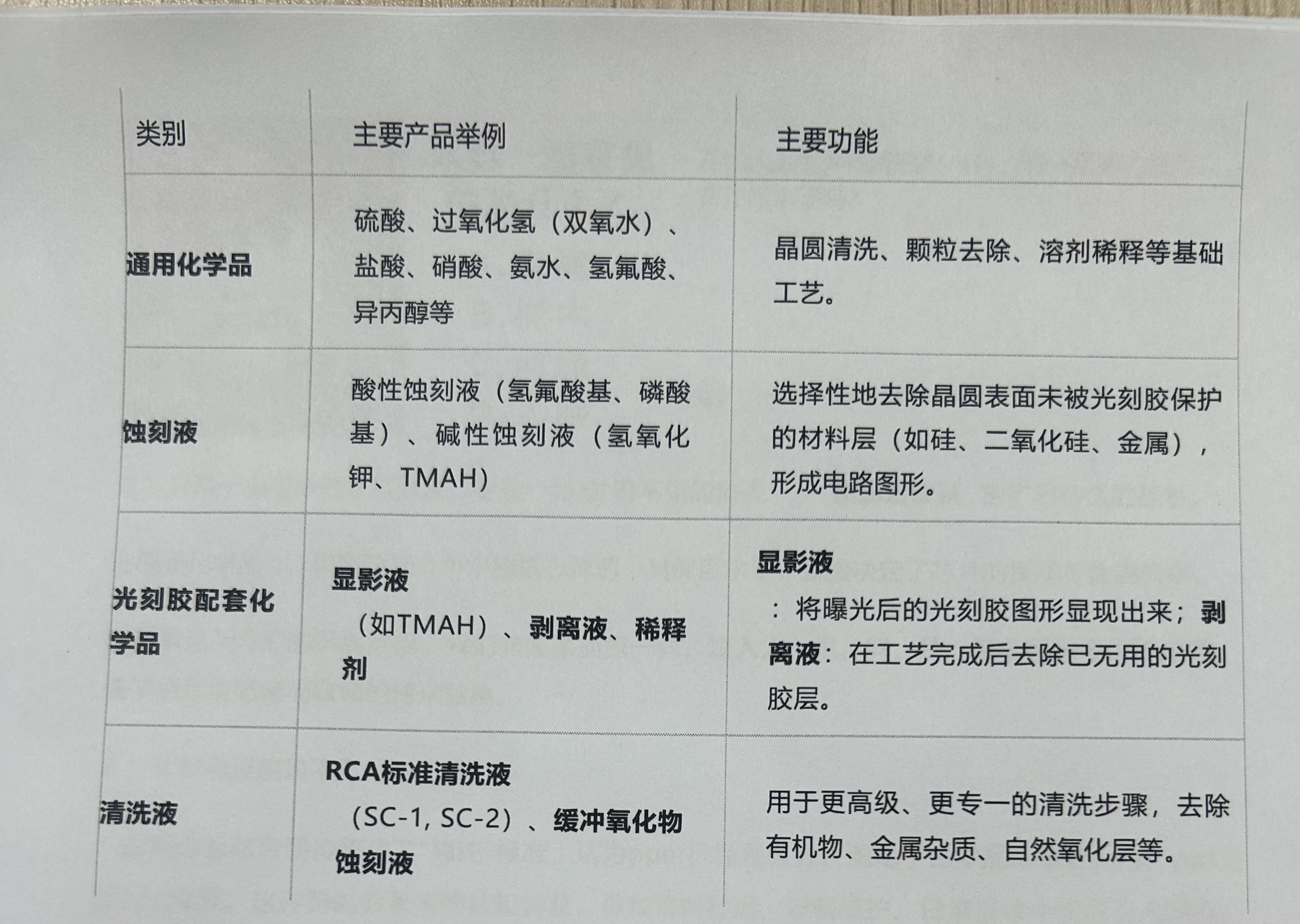 针对特定的工艺步骤(如对特定材料的蚀刻、对特定光刻胶的显影)具有精确的化学功能。