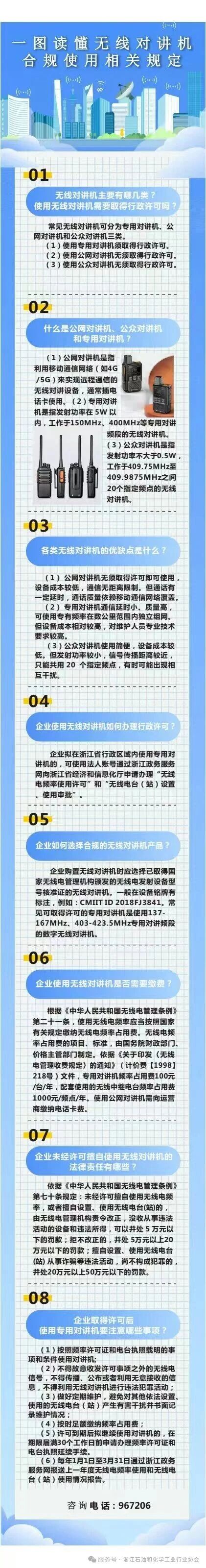 近期,杭州市无线电管理局在开展无线电法律法规宣贯工作中,了解到部分石油和化学工业企业因工作需要,存在使用无线电通信、无人机防御等无线电发射设备的需求,相关企业对相关政策规定、业务知识了解不多。为指导企业依法依规使用无线电设备,降低经营成本,规避法律风险,该局委托我协会将相关法律法规内容在行业内进行宣贯,详见附图(全省适用)。
