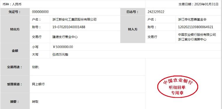 在全国防控疫情的关键时刻,浙江新安化工集团股份有限公司(以下简称“新安股份”)日前召开临时董事会做出决定,捐赠1000万元现金,通过传化慈善基金会,支持湖北、浙江等地防疫、抗疫工作,其中定向捐赠建德市慈善总会、开化县红十字会各150万元(现金各100万元、防疫物资价值各50万元),用于两地防疫抗疫工作。