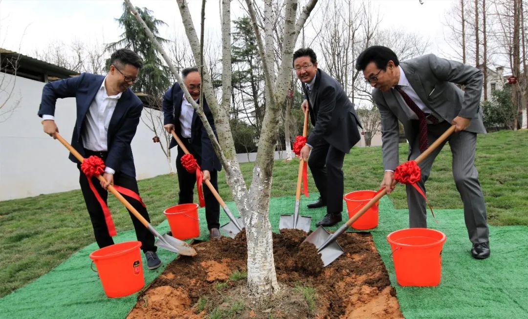 3月12日,正值中国植树节,春风浩荡,大金氟化工(中国)总经理金子秀雄一行来到浙江省化工研究院拜访交流。交流会后,中化蓝天副总经理于晓岗,浙化院董事长、总经理张建君等人携手金子秀雄一行,共同栽种下20株樱花,并将这片樱花园命名为“氟缘”。