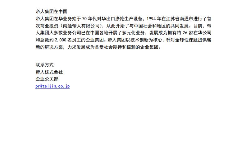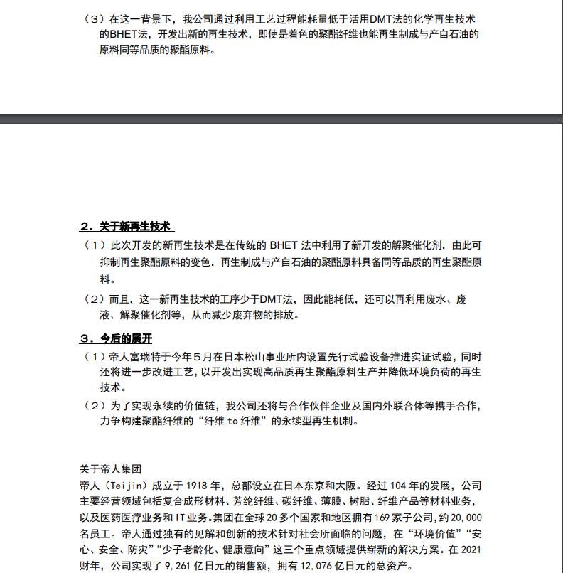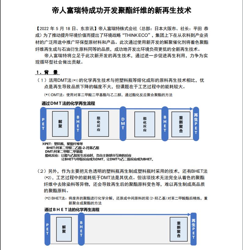 帝人富瑞特成功开发聚酯纤维的新再生技术[帝人富瑞特]