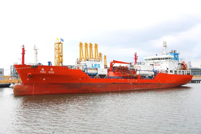 图为液化烃船舶“鹏顺”号在靠泊作业。(张一峰 摄)