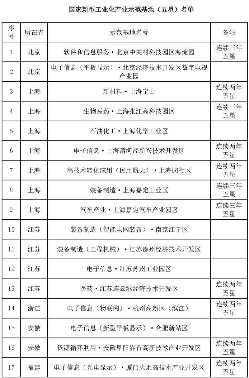 中化新网讯 4月2日,工业和信息化部通报了2020年国家新型工业化产业示范基地发展质量评价结果,五星示范基地作为先进代表,目前已有34家。