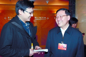 图为孙焕泉正在接受本报记者采访。(张育 摄)
