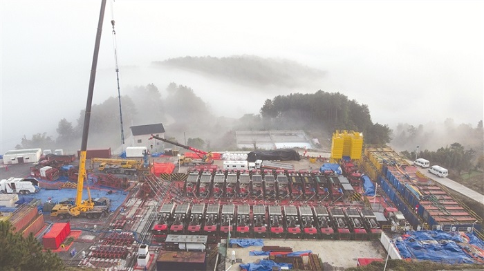 图为綦江页岩气田丁页7井大型压裂施工现场。 (中国石化供图)