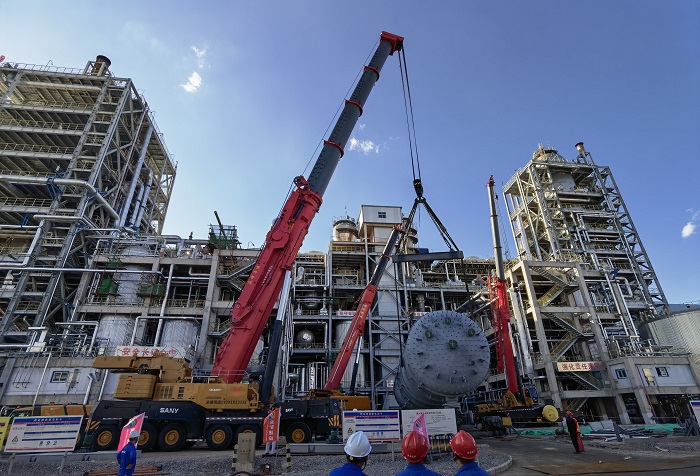 未来能源公司有关负责人介绍,该项目由5000吨/年中试装置直接放大至百万吨级,采用铁基催化剂低温浆态床反应体系,反应器直径9.8米、容积3500立方米,为项目建设时世界规模最大。针对技术工程化存在的运行周期短、生产负荷低、能耗高等问题,2018年10月以来对低温费托合成装置进行技术攻关,开发了高温、高固条件下液固高效分离技术、浆态床反应器气体分布器及费托合成铁—铜系低温催化剂,率先在国内实现了240℃低温下高碳烃类的高选择性,实现了气体与催化剂均匀分布,缩小了反应器床层温差,提升了反应效率。通过体系研究并实施系列技术改造、优化和工业化应用,解决了多项技术瓶颈,优化了低温费托合成工艺技术,合成装置产能提升45万吨/年,日产量增长10%以上,实现长周期稳定运行,吨油品单耗显著降低。