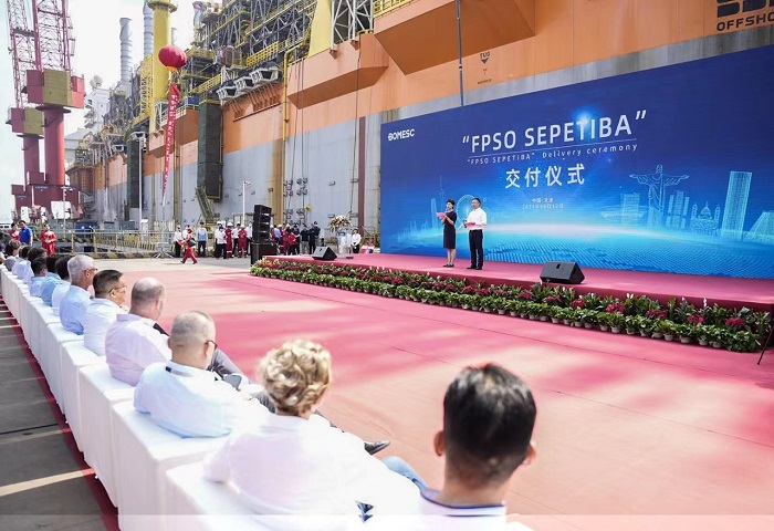 据悉,“SEPETIBA”轮于2021年7月停靠博迈科码头,博迈科作为总承包商主要负责该项目上部模块建造以及船体集成、总装、调试工作。项目建造过程中,面对进口设备及材料供应周期长、价格变化等多重因素的影响,博迈科坚持以客户为中心,和业主方秉承合作共赢理念,携手应对挑战,积极探讨解决方案,并不断锤炼施工工艺技能。最终在博迈科作为总承包商、巴西石油作为最终用户、SBM船东方及其相关方等数千人的共同努力下,项目进度稳步推行,如期完成交付。作为天津地区首个FPSO总装项目,该轮交付后将创造近10亿美元的出口额,有效填补天津地区FPSO总装业务空白。