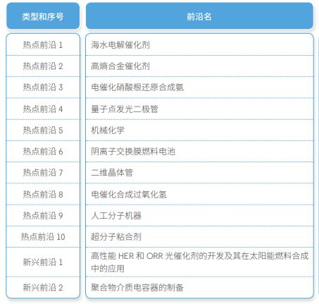 “海水电解催化剂”和“电催化合成过氧化氢”入选2023年重点热点前沿。
