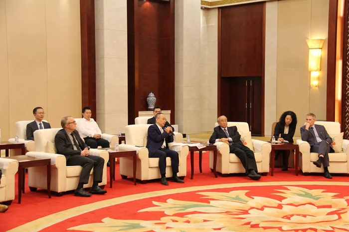 马磊大使、李寿生会长与广西宏坤及托普索公司领导合影。